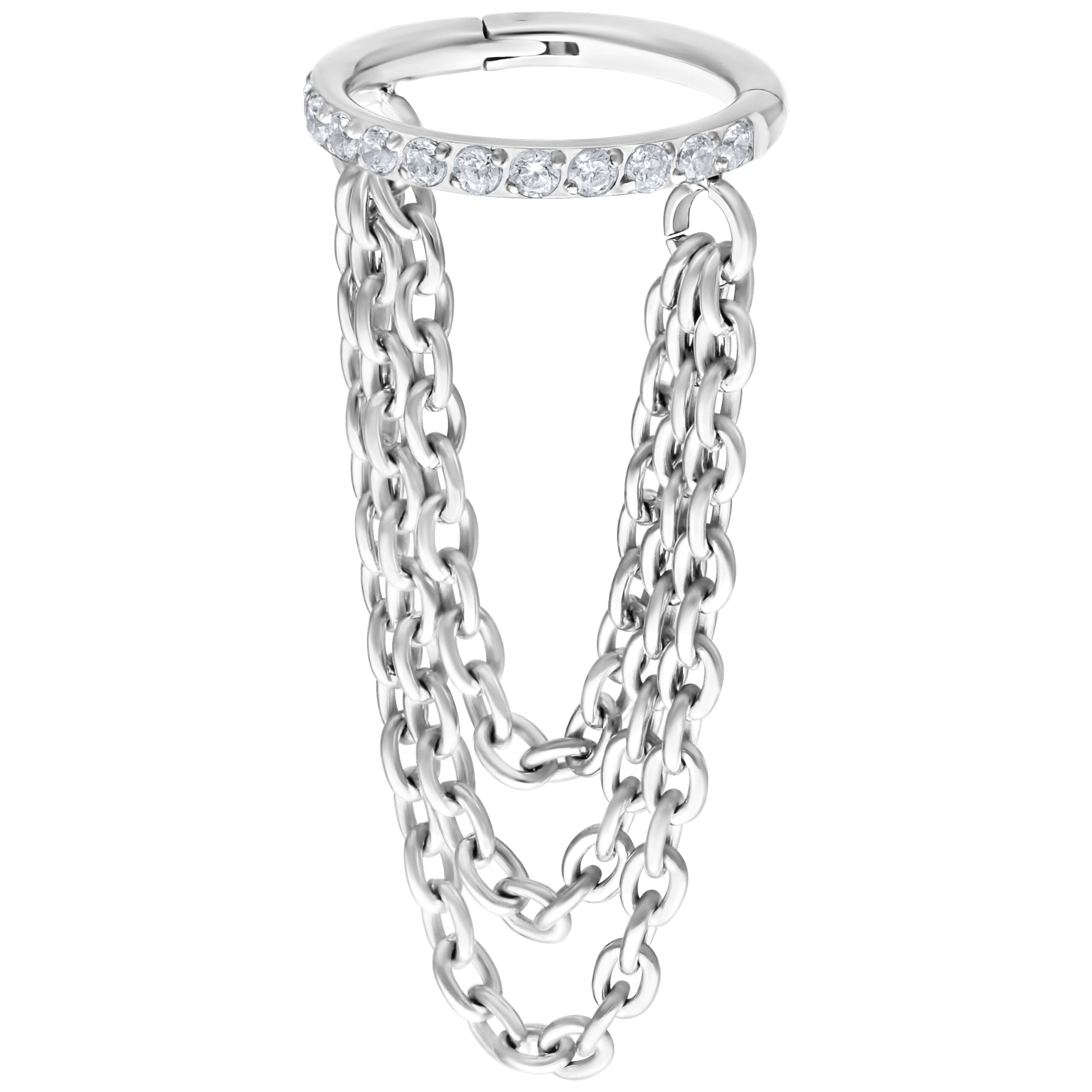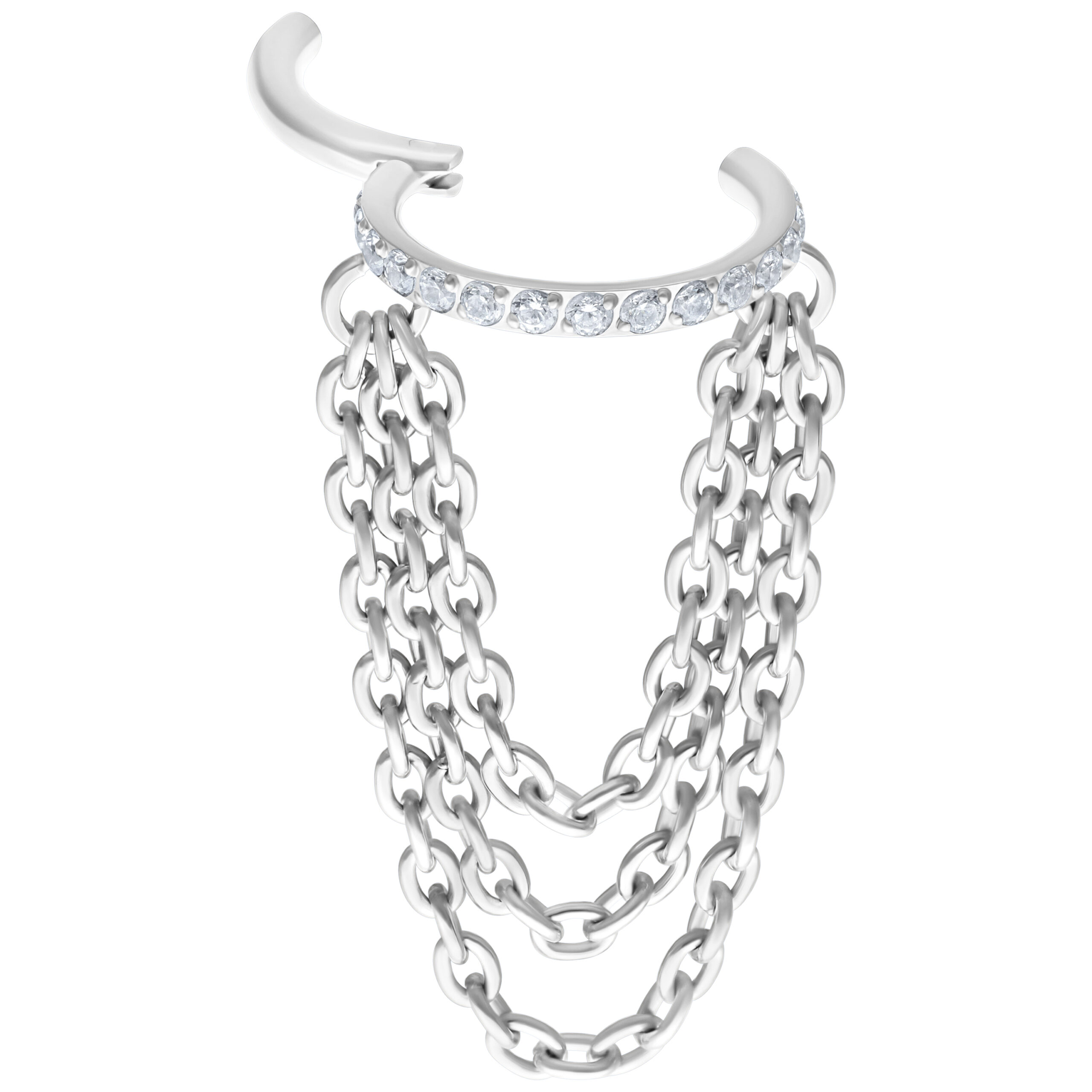 Il Clicker a tripla catena con cristalli è qualcosa di molto speciale. Con la sua catena a 3 file, pende elegantemente dall’orecchio. I cristalli brillano meravigliosamente alla luce. Questa combinazione attira sicuramente l’attenzione!