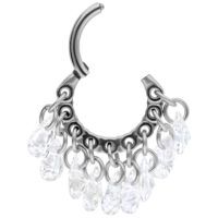 Che sia come dettaglio scintillante di giorno o come protagonista luminoso di sera, il Dangling Crystals Clicker dona al tuo stile carattere e brillantezza.
