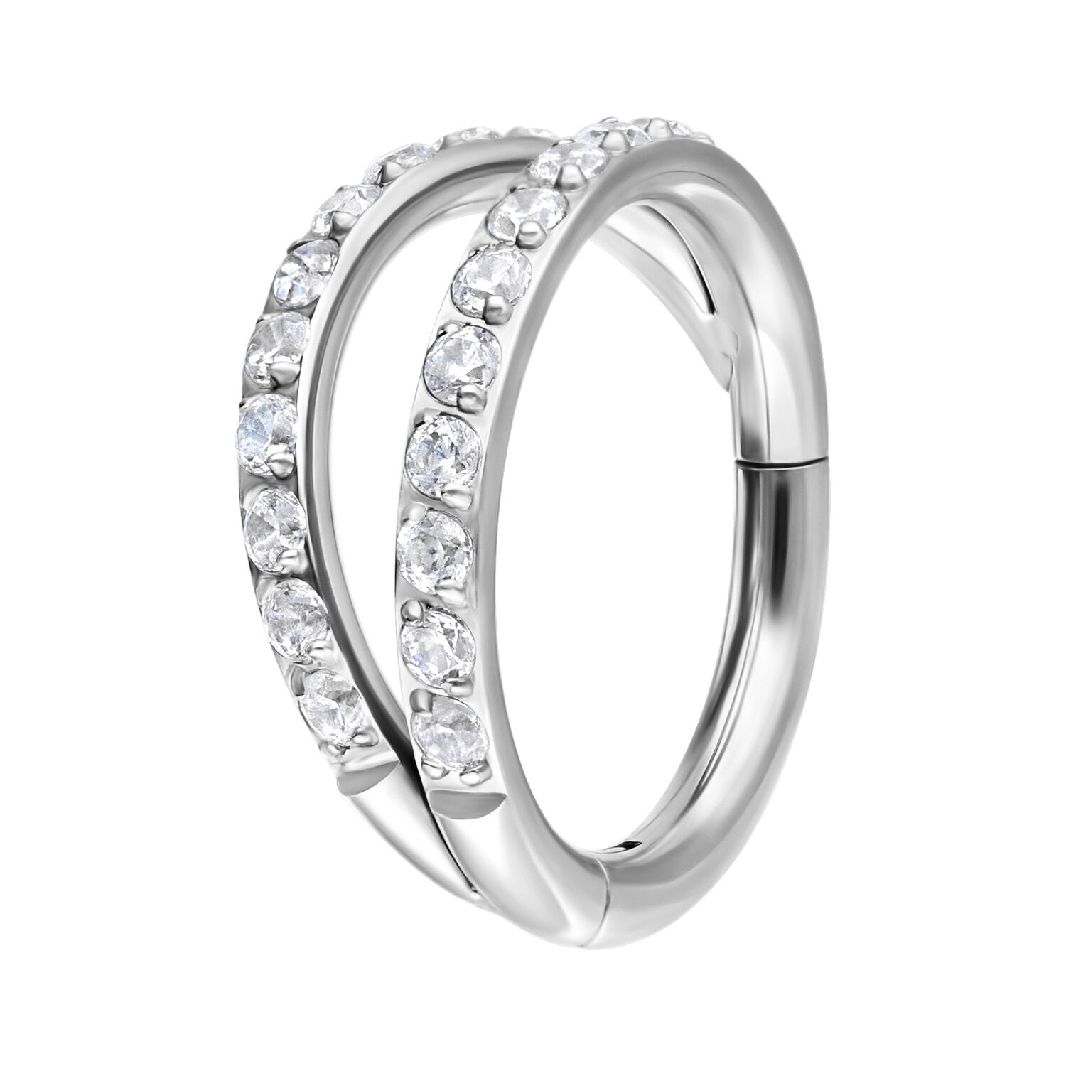 Il nostro Clicker con doppia fila di cristalli di alta qualità è particolarmente caratterizzato dai numerosi cristalli scintillanti che lo rendono un vero e proprio eye-catcher. Dai sfogo alla tua creatività, perché puoi indossare questo anello su quasi tutti i piercing.