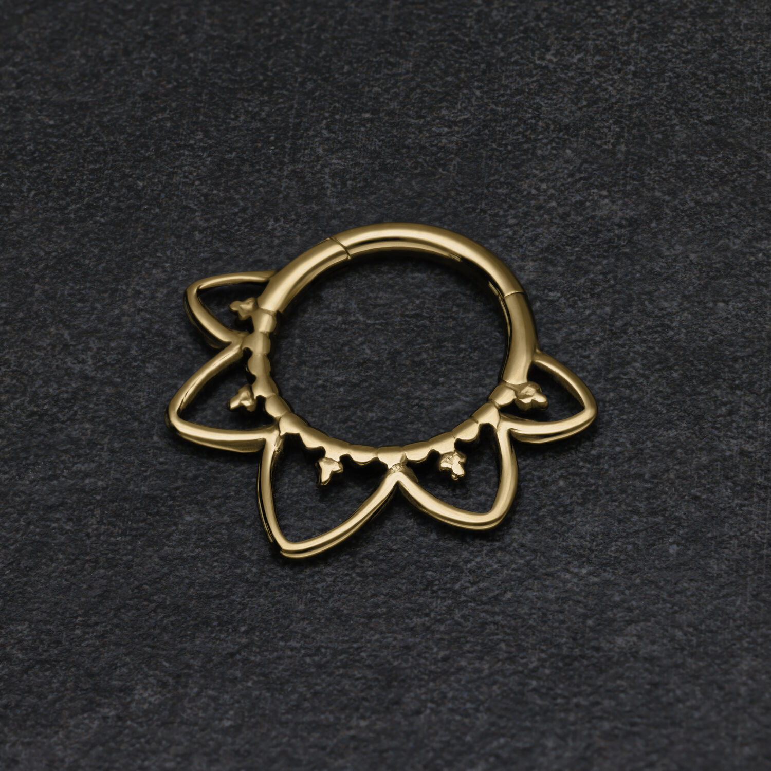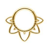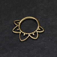 Il nostro Oriental Septum Clicker è realizzato in titanio di alta qualità ed è perfetto per il vostro piercing al setto o anche al Daith. Il piercing è dotato di una barra di cerniera curva, che lo rende facile da maneggiare quando si inserisce il piercing, senza bisogno di assistenza.