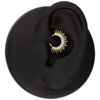 Il clicker Sun Beams per septum e daith, realizzato in titanio grado 23, presenta un design espressivo con un’estetica pulita e strutturata. Gli elementi finemente disposti, ispirati ai raggi del sole, creano un aspetto potente ma elegante.