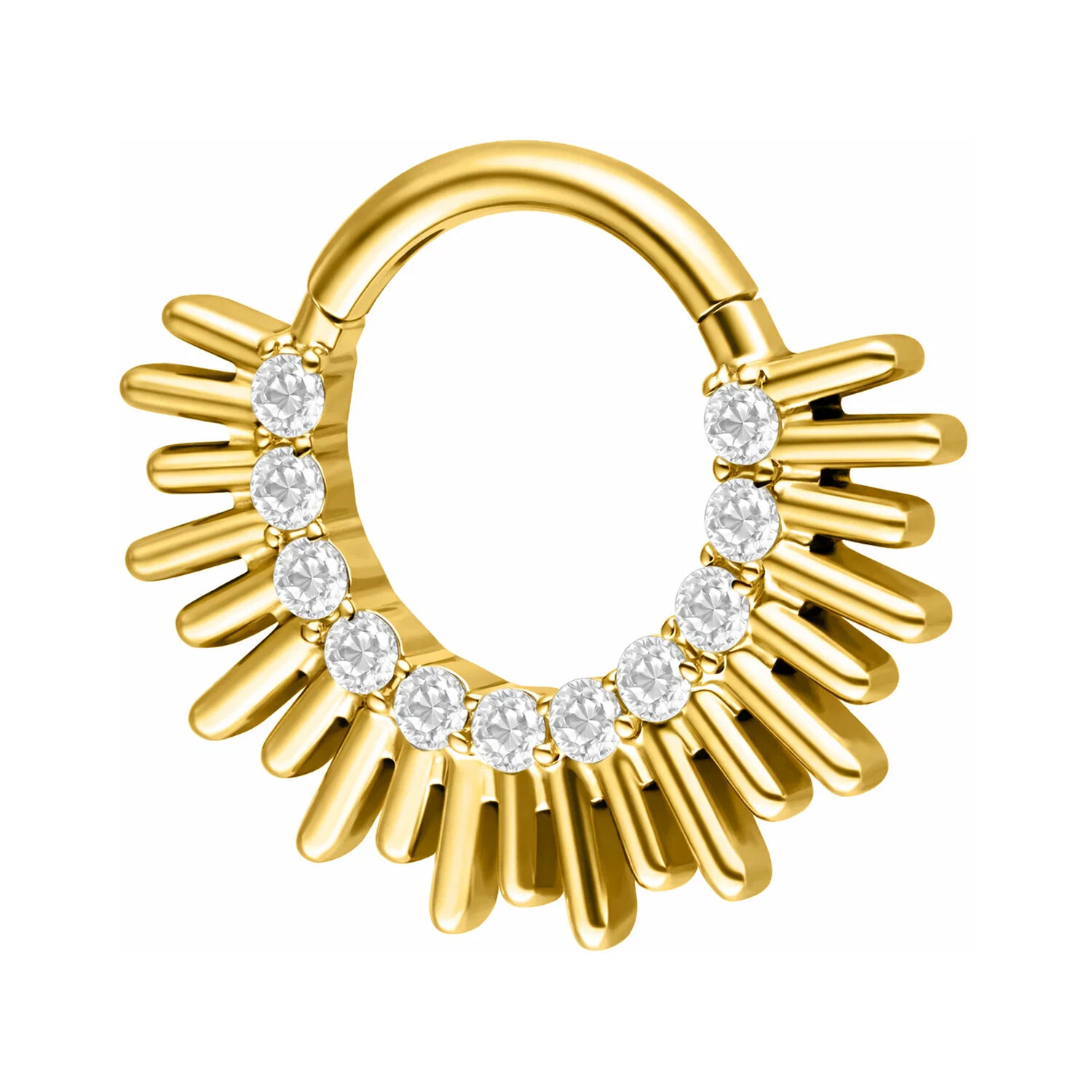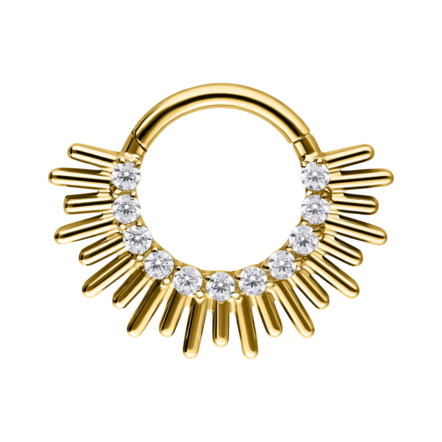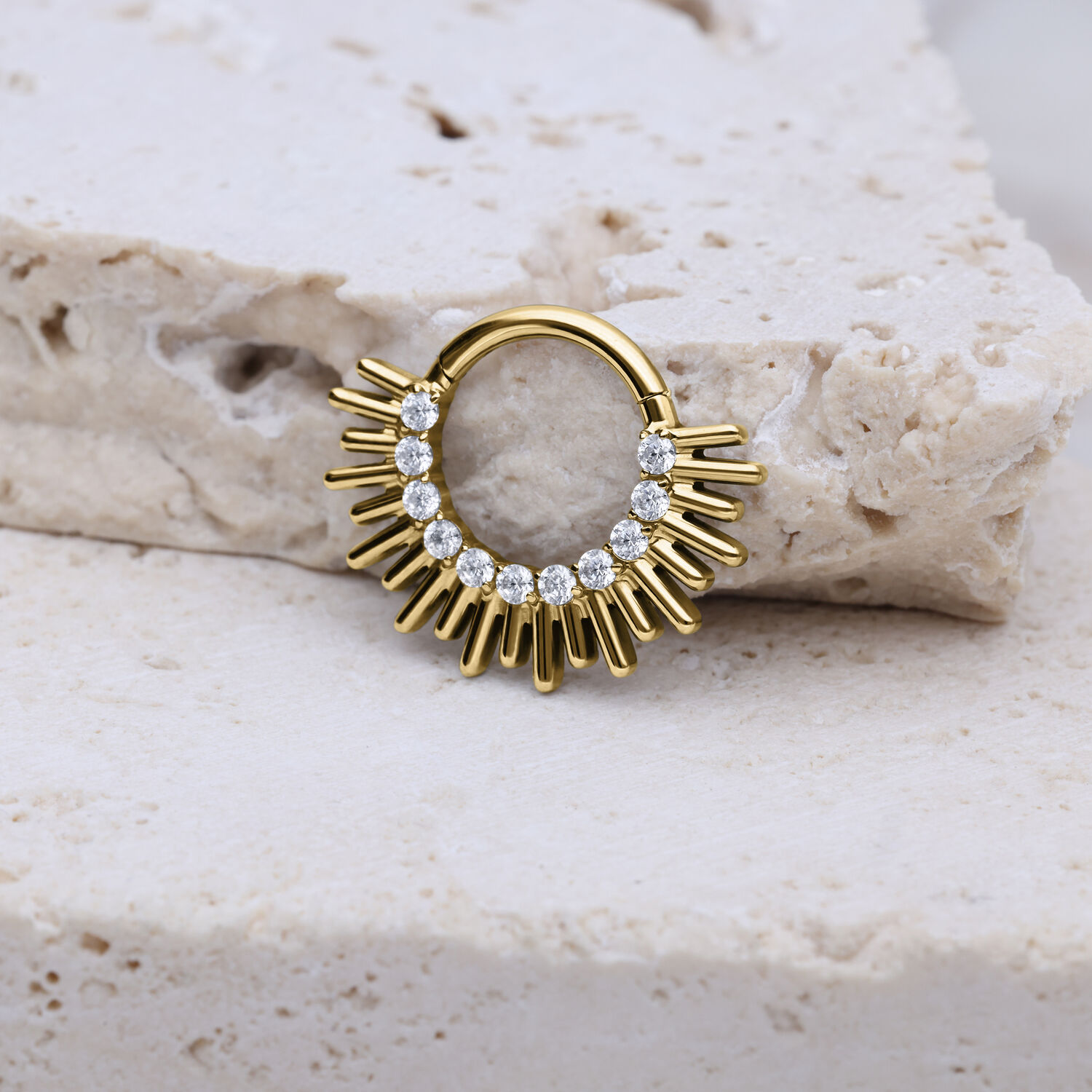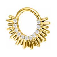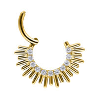 Il clicker Sun Beams è ideale per i piercing al setto nasale e al daith, perfetto per chi apprezza gioielli distintivi con un forte impatto visivo.