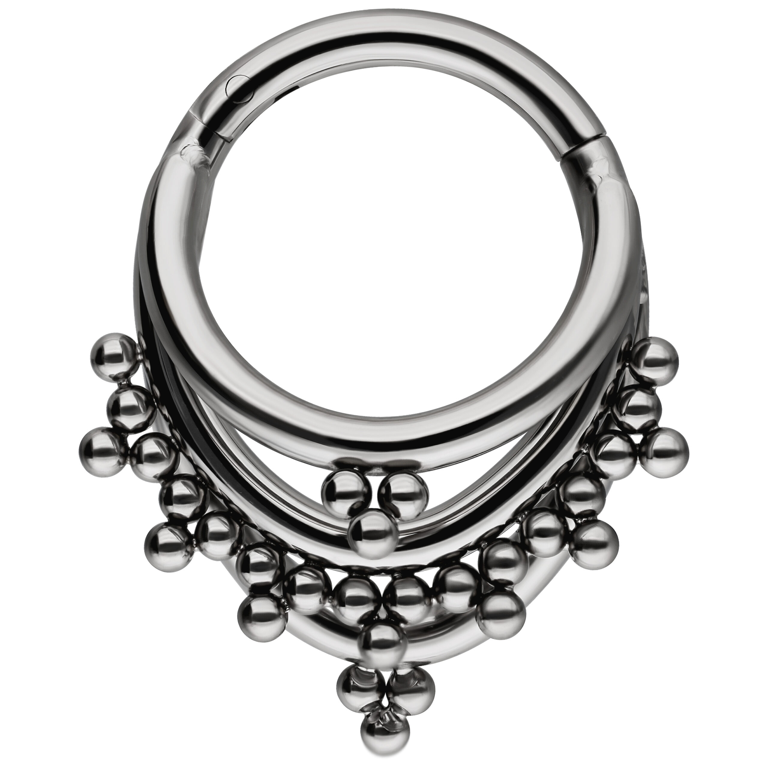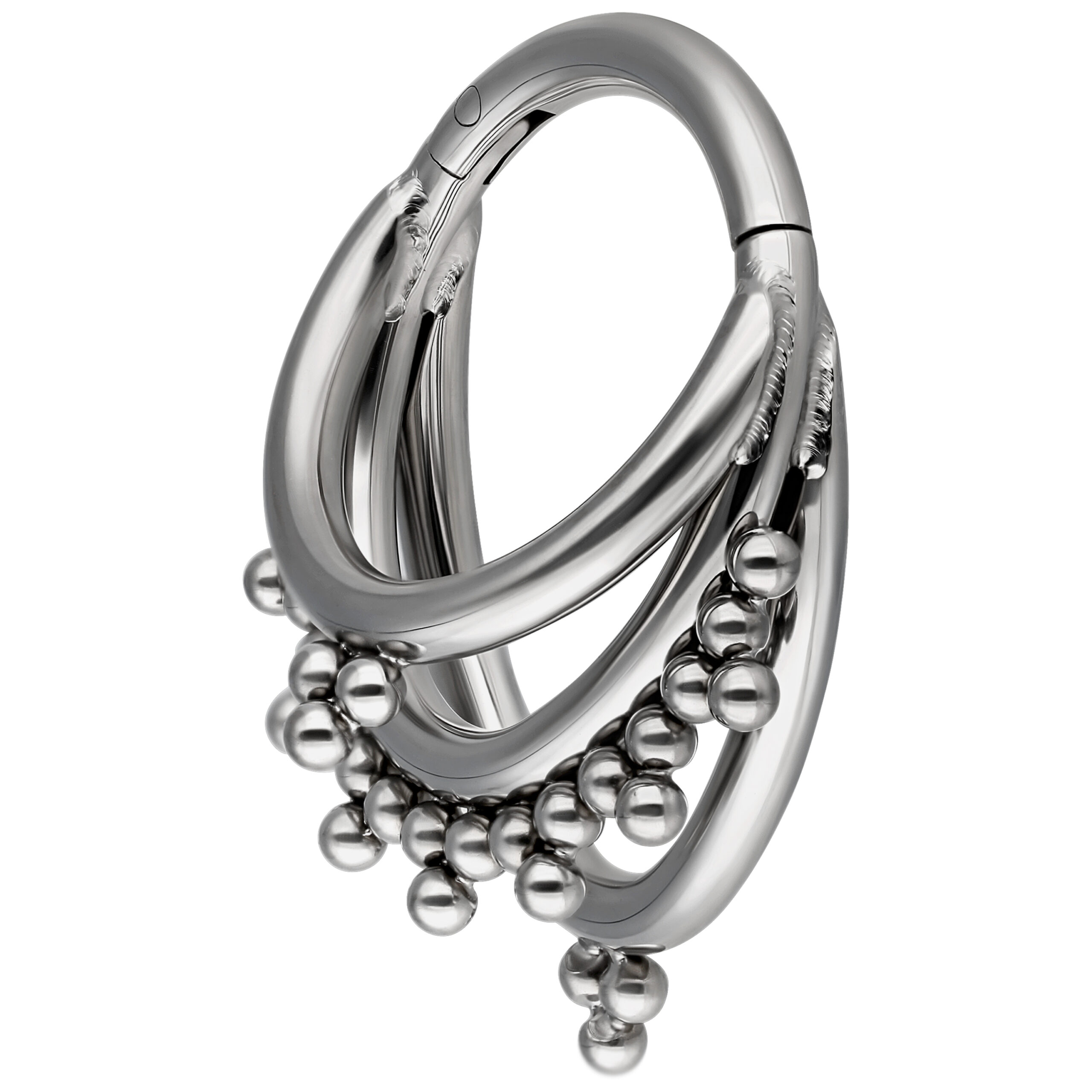 Sei alla ricerca di un piercing speciale che ti conquisti senza lustrini? Allora il nostro Triple Oriental Clicker è quello che fa per te! Da indossare tutti i giorni o nelle occasioni speciali, questo clicker in titanio aggiunge un tocco di bellezza orientale al tuo look. Concediti un accessorio che enfatizzi il tuo stile e ti faccia risplendere – senza alcun luccichio!