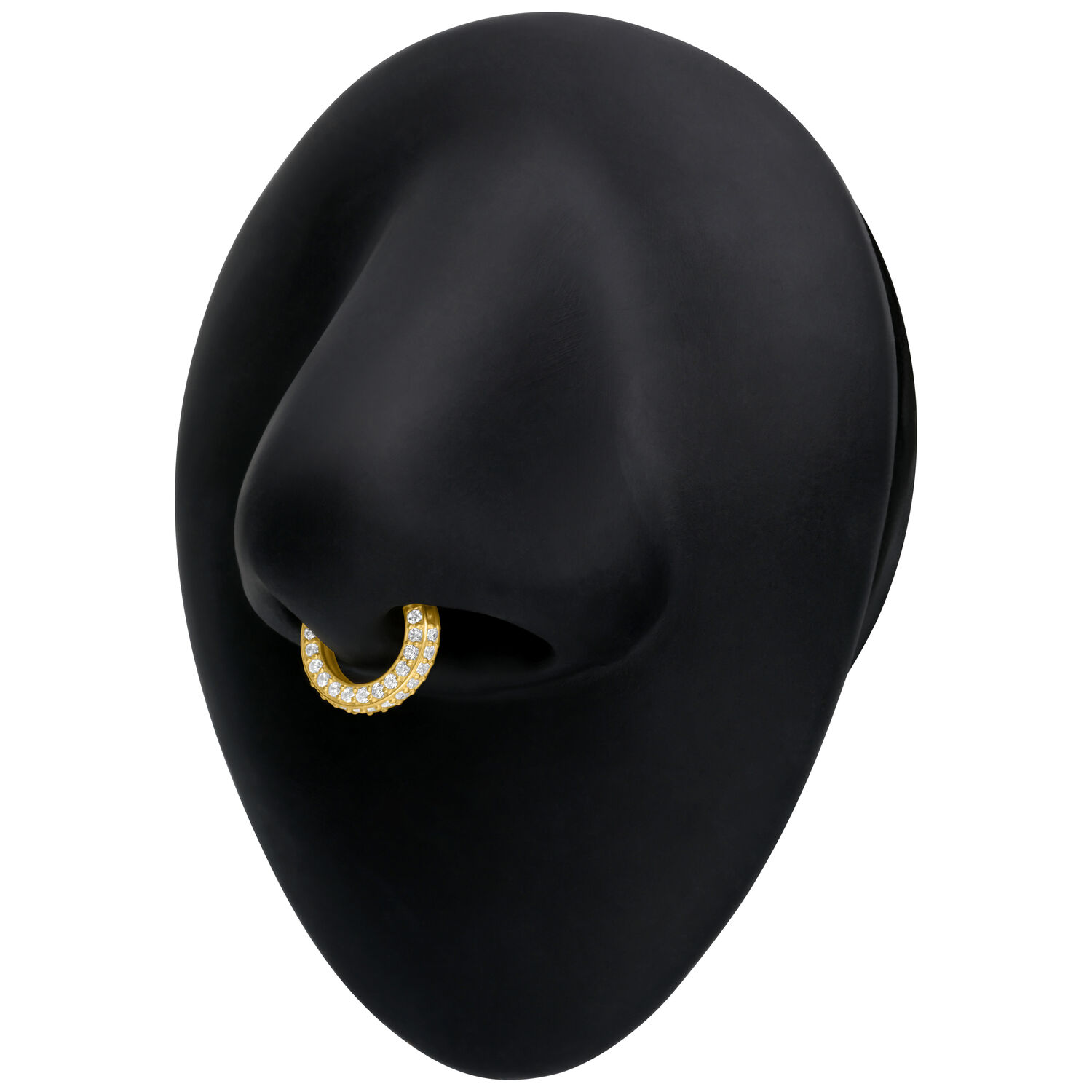 L’anello ha una chiusura a cerniera che consente un facile inserimento del piercing.