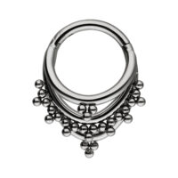 Il clicker è particolarmente adatto per i piercing helix, daith e septum. Grazie alla sua chiusura a cerniera, è facilissimo cambiare senza bisogno di aiuto.