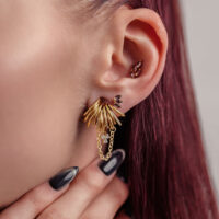 Il pendente può essere fissato a un clicker per piercing ed è adatto per essere indossato su helix, rook, vertical helix o lobo. Ciò consente opzioni di stile versatili e una perfetta integrazione sia in piercing minimalisti che espressivi.