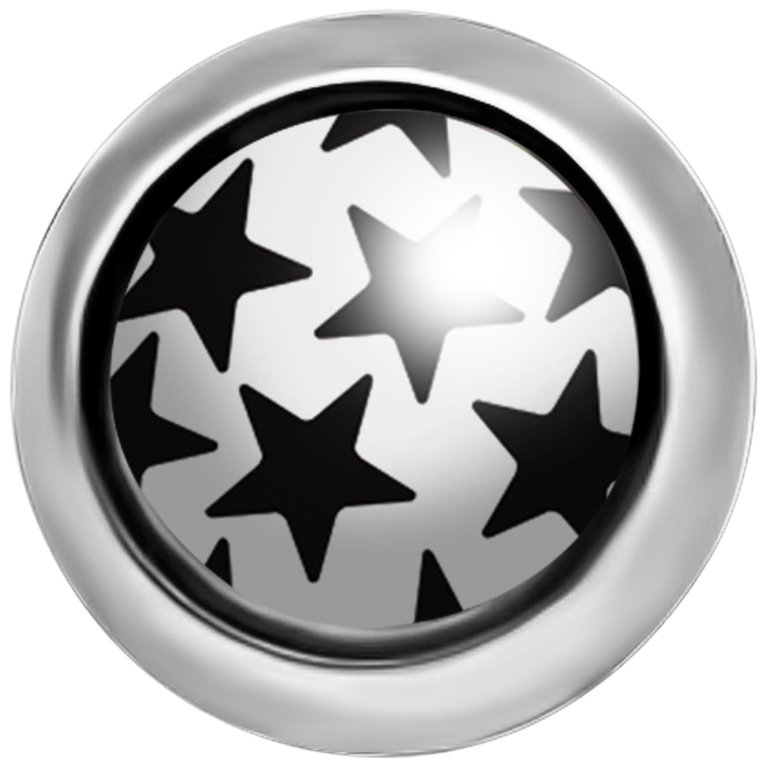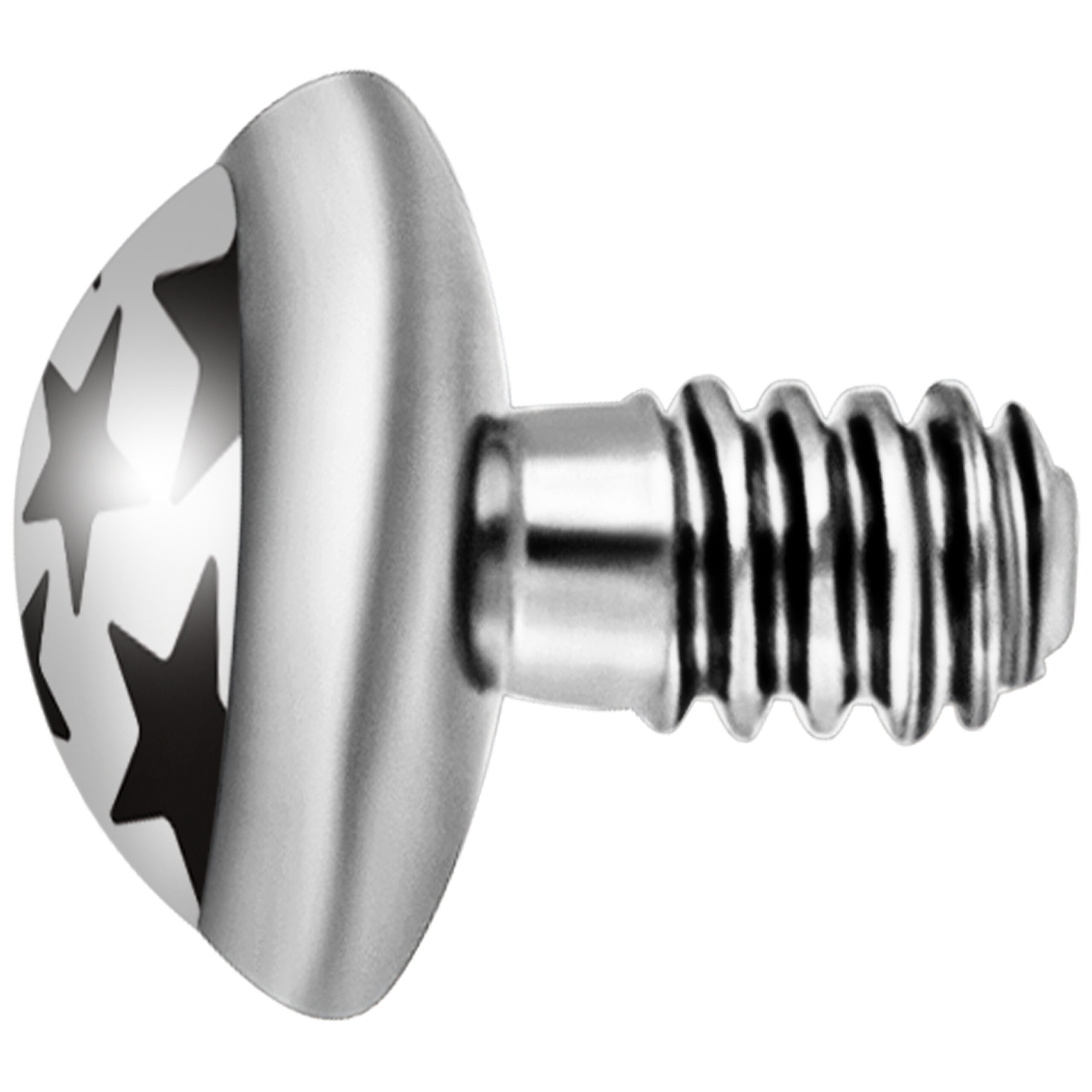 Disco in titanio naturale con disegnate tante piccole stelline nere su sfondo bianco, ideale per completare o rinnovare l’aspetto di un piercing dando uno stile Rock ‘n Roll. Il disco è particolarmente indicato come terminale per dermal anchor.