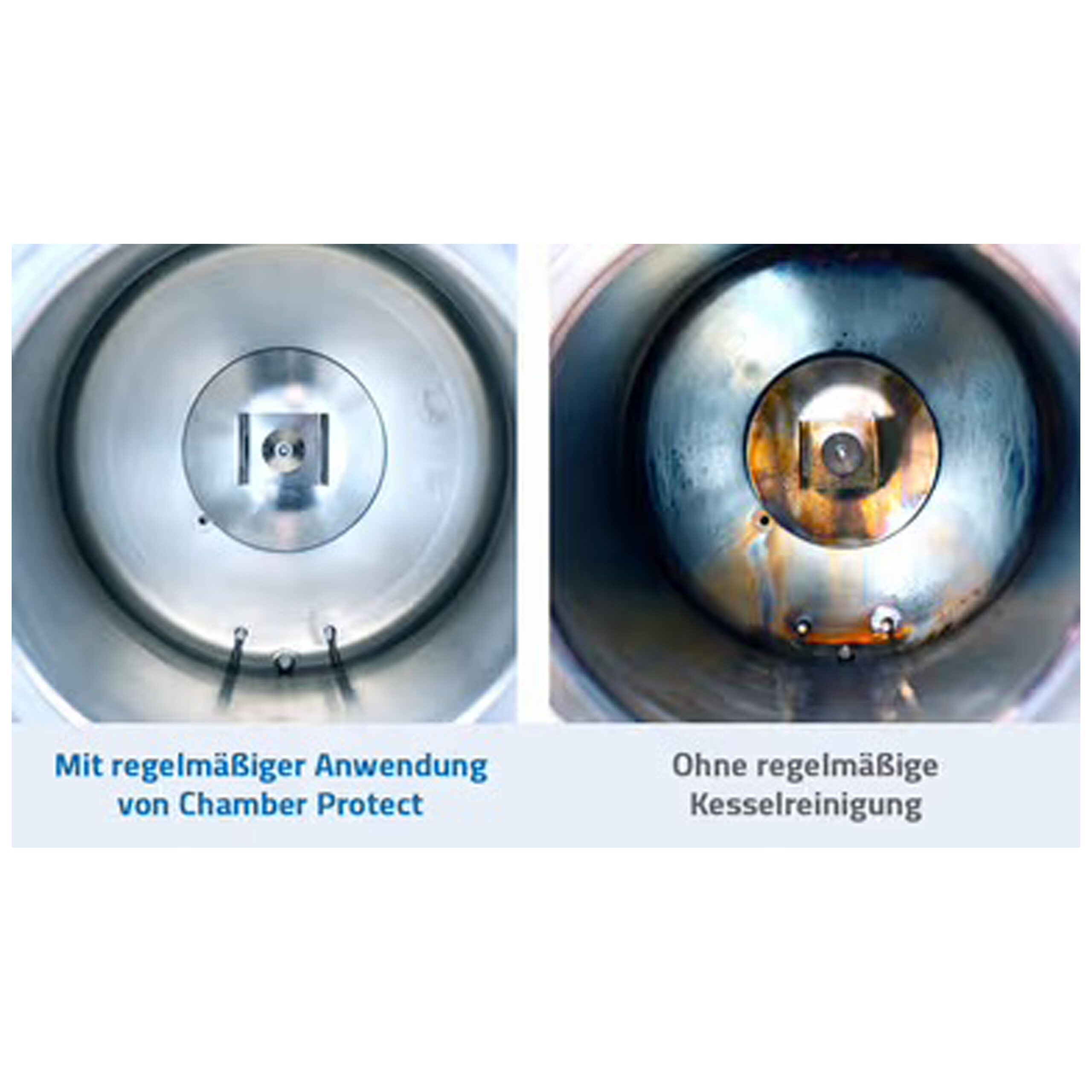Il set di pulizia Chamber Protect è la soluzione ideale per la pulizia settimanale delle superfici in acciaio inox del bollitore dell’autoclave.